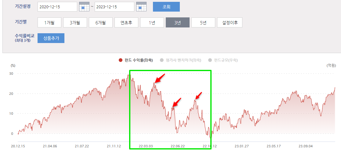 1년 수익률과 큰 차이가 없죠.. 그건 2022년에 많이 하락해서 그래요~ (아래 그림 참고)