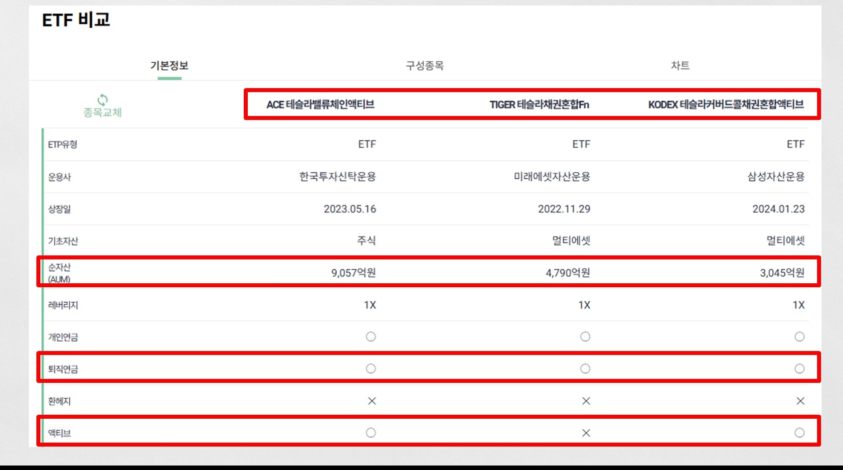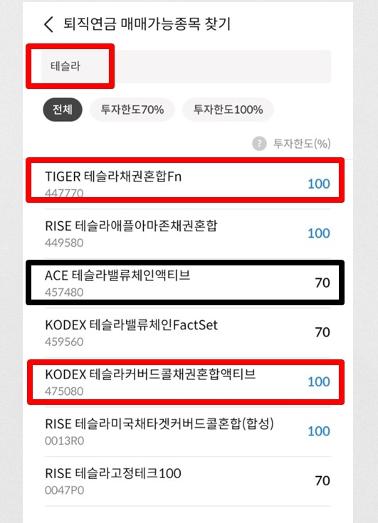 여기서 2개의 테슬라 ETF가 채권혼합입니다.