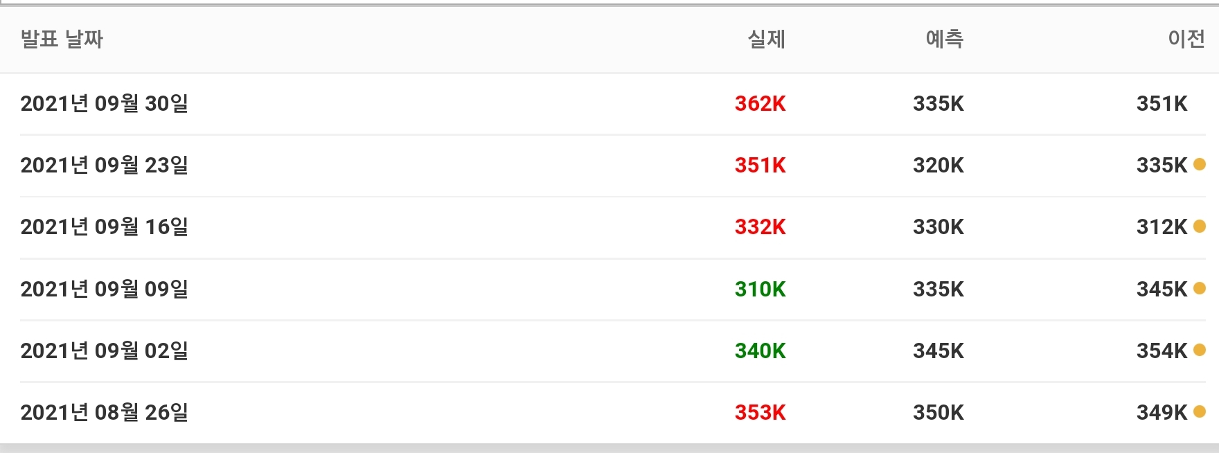최근 3주 연속으로 예측치보다 높게 나와서 부정적입니다.