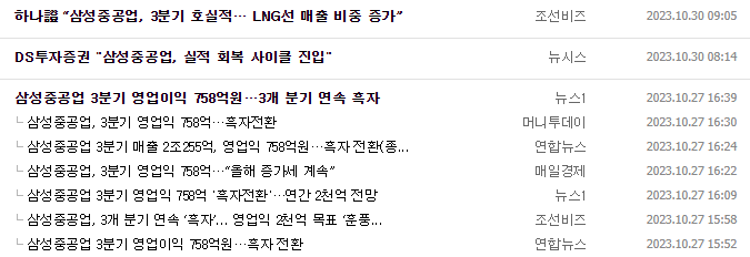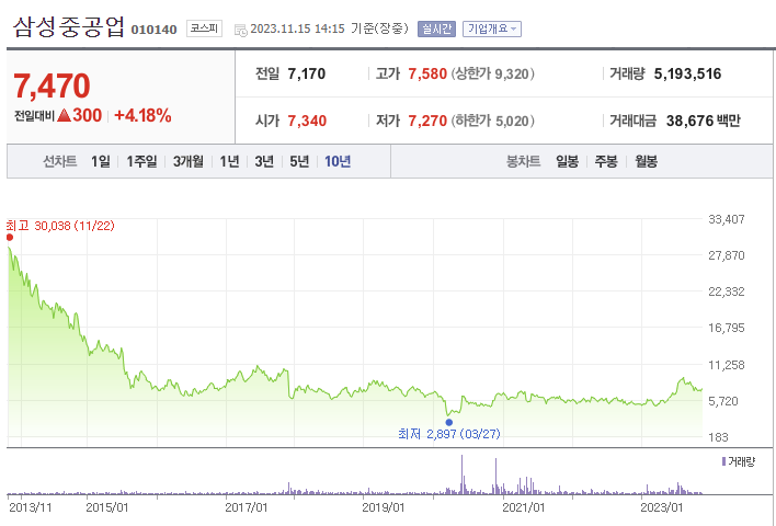 23년 11월 15일 기준으로 삼성중공업에 대한 생각입니다.