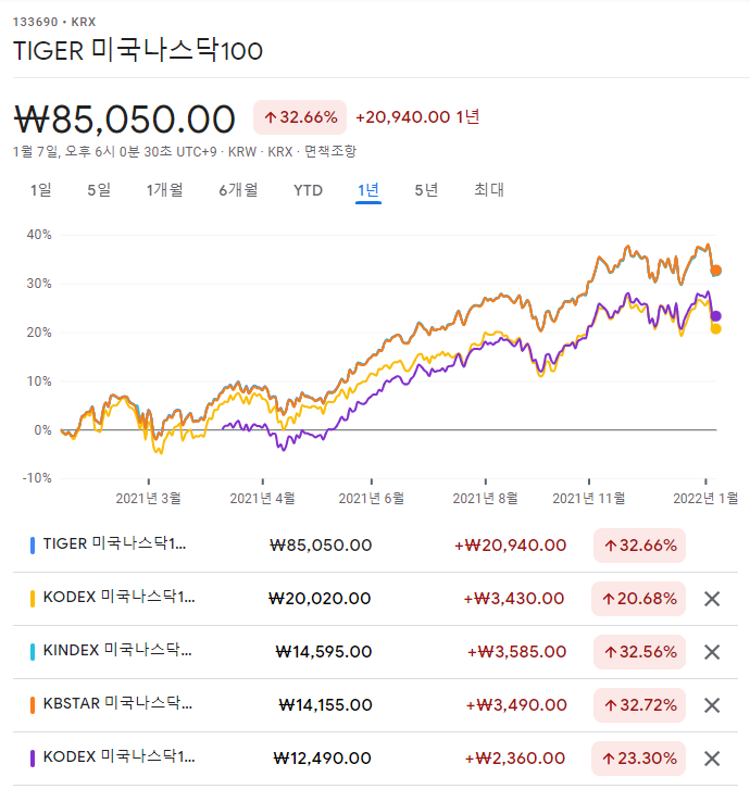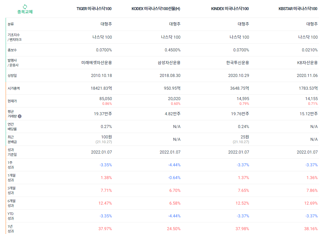 TIGER 미국나스닥100, KINDEX 미국나스닥100, KBSTAR 미국나스닥100