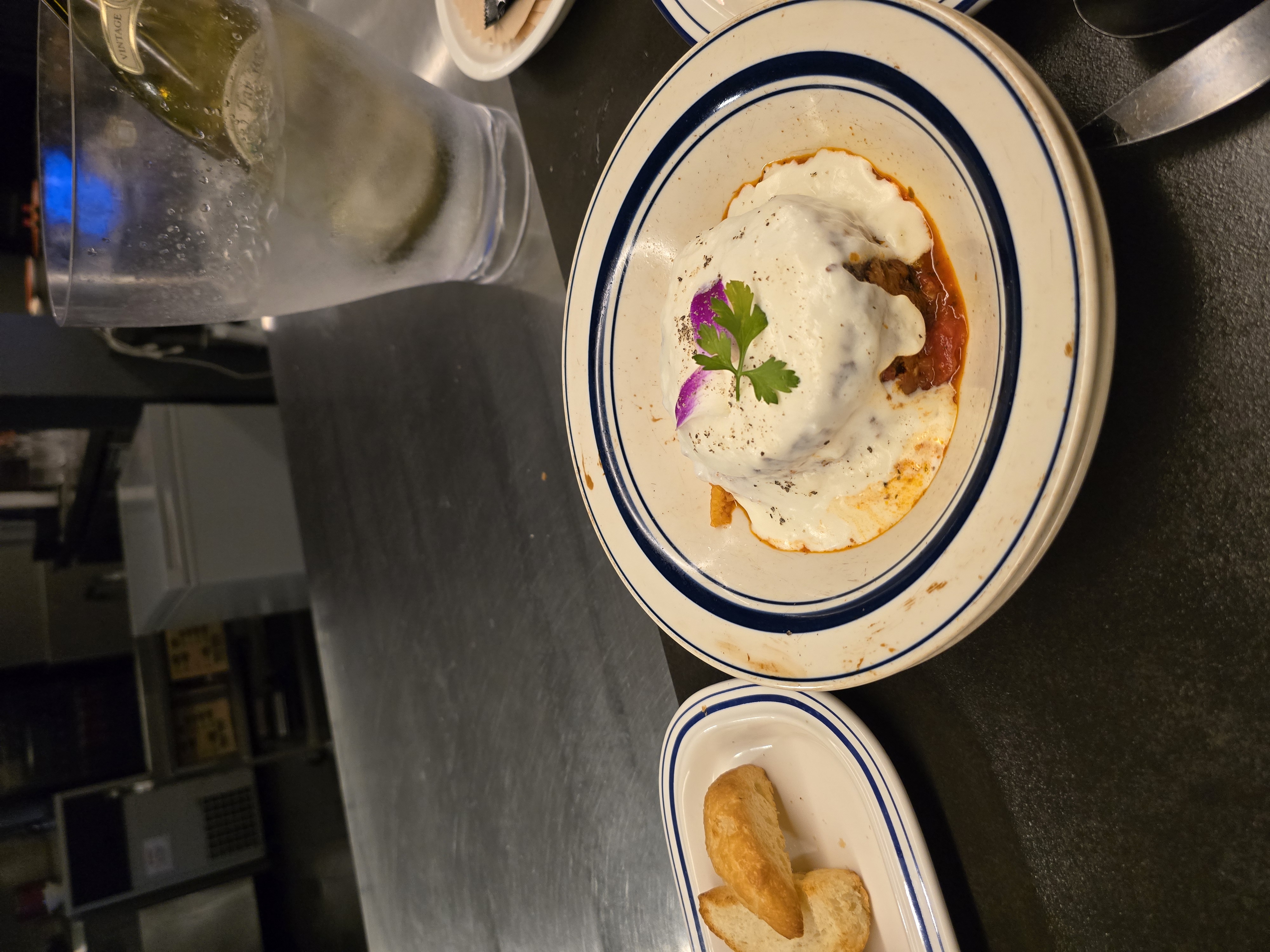 그 위에 부드러운 화이트 크림 소스가 올라간 라자냐.