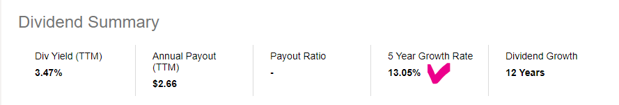 DGRW는 6.31%이고 SCHD는 13.05%입니다. SCHD의 5년 배당성장률이 높습니다.