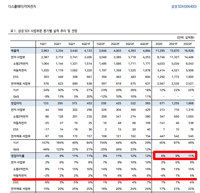 2021년 예상 영업이익률이 9%, 2022년 예상 영업이익률은 11%입니다.