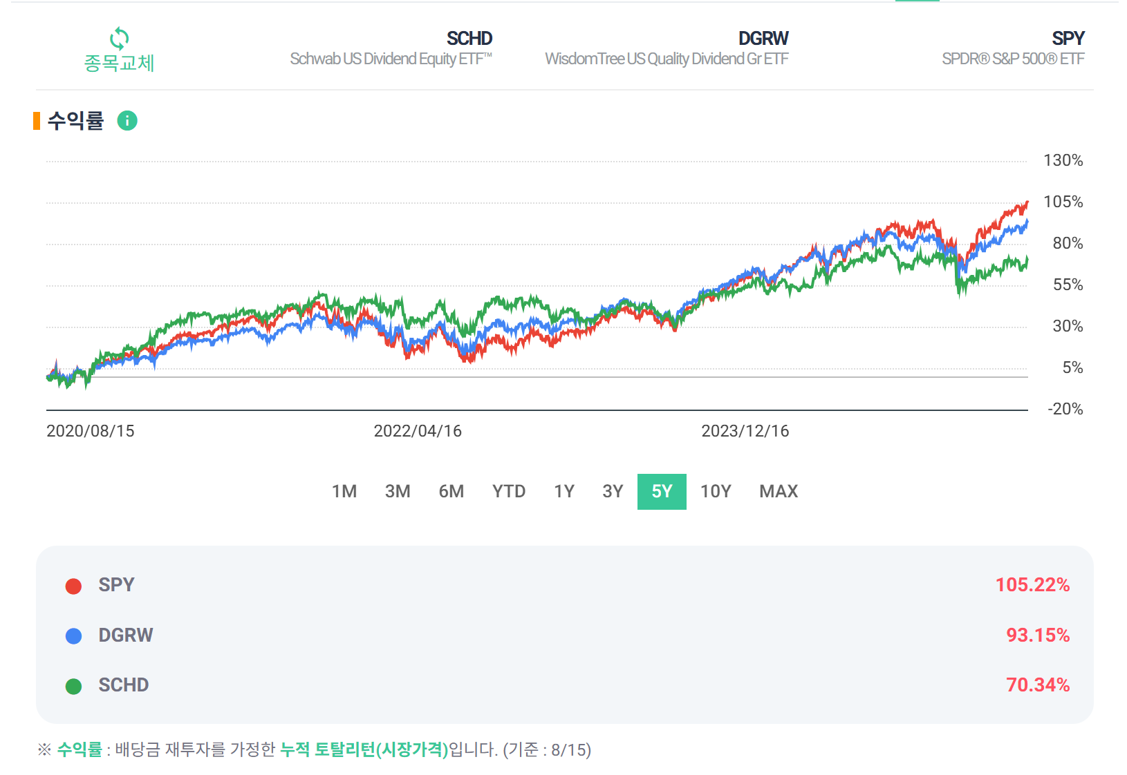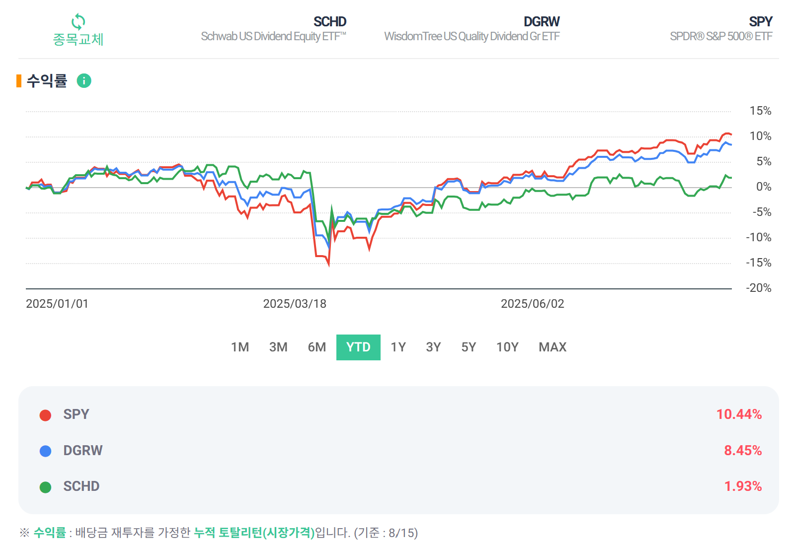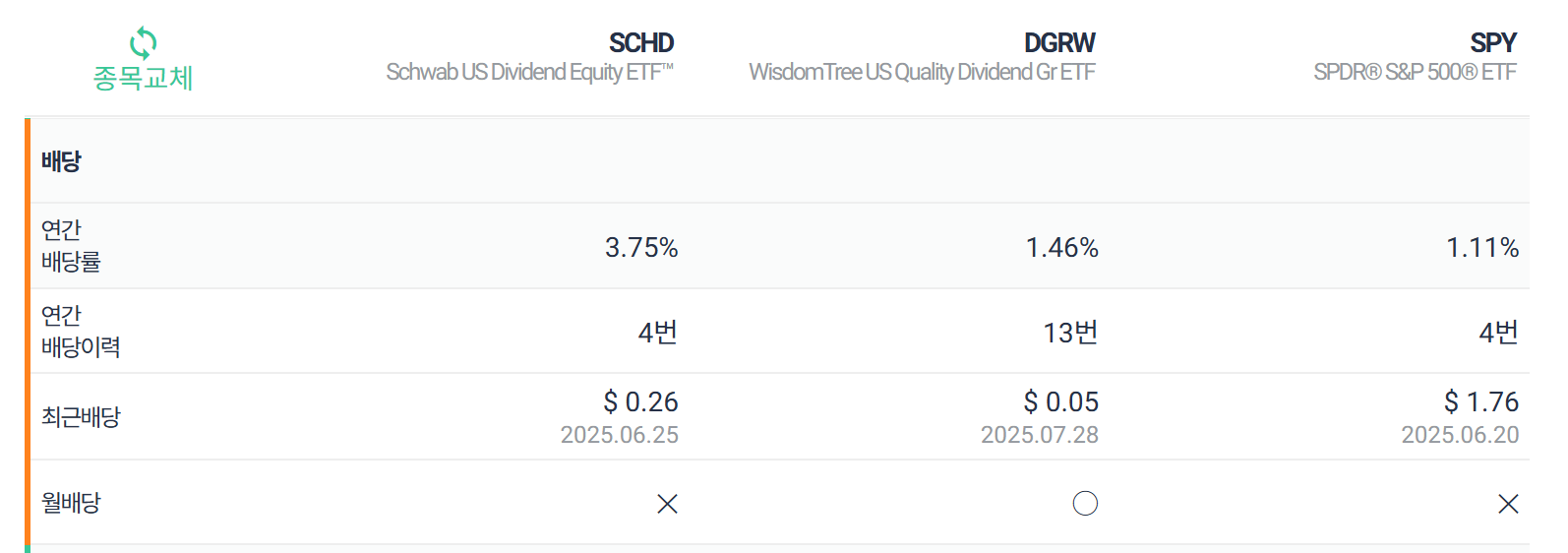 미국배당성장주를 선택한다면, SCHD보다는 DGRW네요.